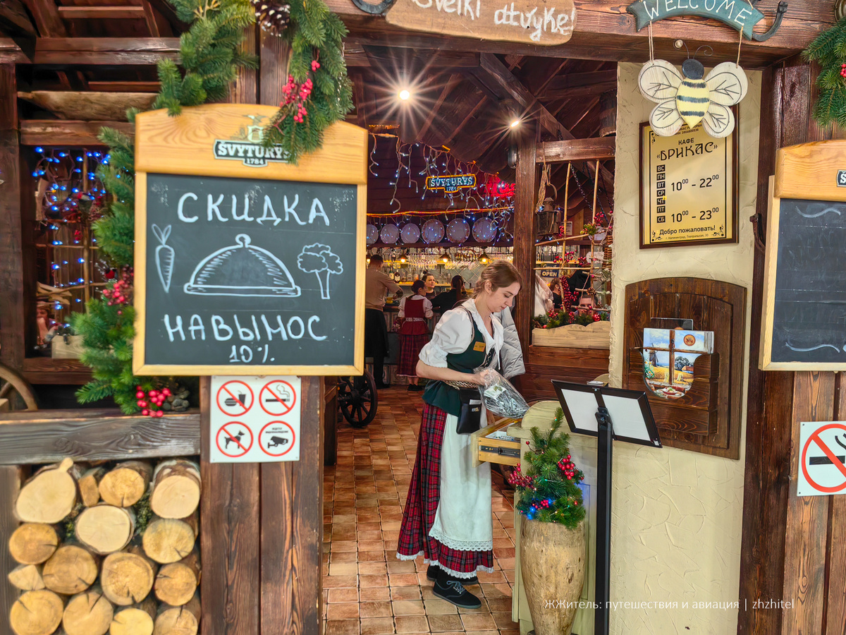Раньше я думал, что самая картофельная кухня у белорусов. Но в Калининграде мое мнение изменилось. Мы отправились пообедать в ресторане «Брикас», который позиционируется как единственный аутентичный ресторан литовской кухни в России. Что ж, давайте посмотрим на литовскую кухню. Ресторан «Брикас» находится на втором этаже ТРЦ «Европа». Интерьер уютный, с отсылкой к деревне. Собственно, литовская кухня является крестьянской. В меню представлены грибной крем-суп, литовский холодный борщ, кислые щи и множество блюд из картофеля. Если блюдо мясное, то на гарнир подается картофельное пюре, а еще в литовской кухне представлены картофельные блины, картофельные свистульки, картофельная запеканка. Но одно из основных блюд — цеппелины. Это котлеты из тертого картофеля с начинкой или без нее. Название цеппелины появилось во время Первой мировой войны, когда Литва находилась под немецкой оккупации. Тогда в небе летали военные дирижабли Zeppelin. А блюдо очень было похоже по форме на дирижабли. В