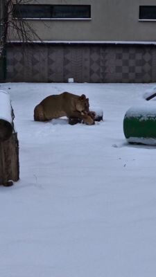 В Белгородском зоопарке хищники из жаркой Африки — львы — ощутили на себе все прелести русской зимы в виде обильного снегопада. Видео, на котором царь зверей с любопытством изучает снежинки и с аппетитом трапезничает мясом на белоснежном покрывале, стало хитом в соцсетях, наглядно демонстрируя адаптацию экзотических животных к жизни в умеренном климате. Необычные кадры были сделаны смотрителями в рамках традиционной рубрики «Пятничный котик». По словам сотрудников зоопарка, для львов, родившихся в непростых погодных условиях, снег не стал стрессом, а вызвал искренний интерес. Хищники обнюхивали снег, пытались ловить лапами падающие хлопья, а затем устроили сытный обед прямо на непривычной белой «скатерти». После активной прогулки и еды на свежем воздухе львы, следуя кошачьей природе, отправились греться в свои тёплые вольеры с подогревом.
