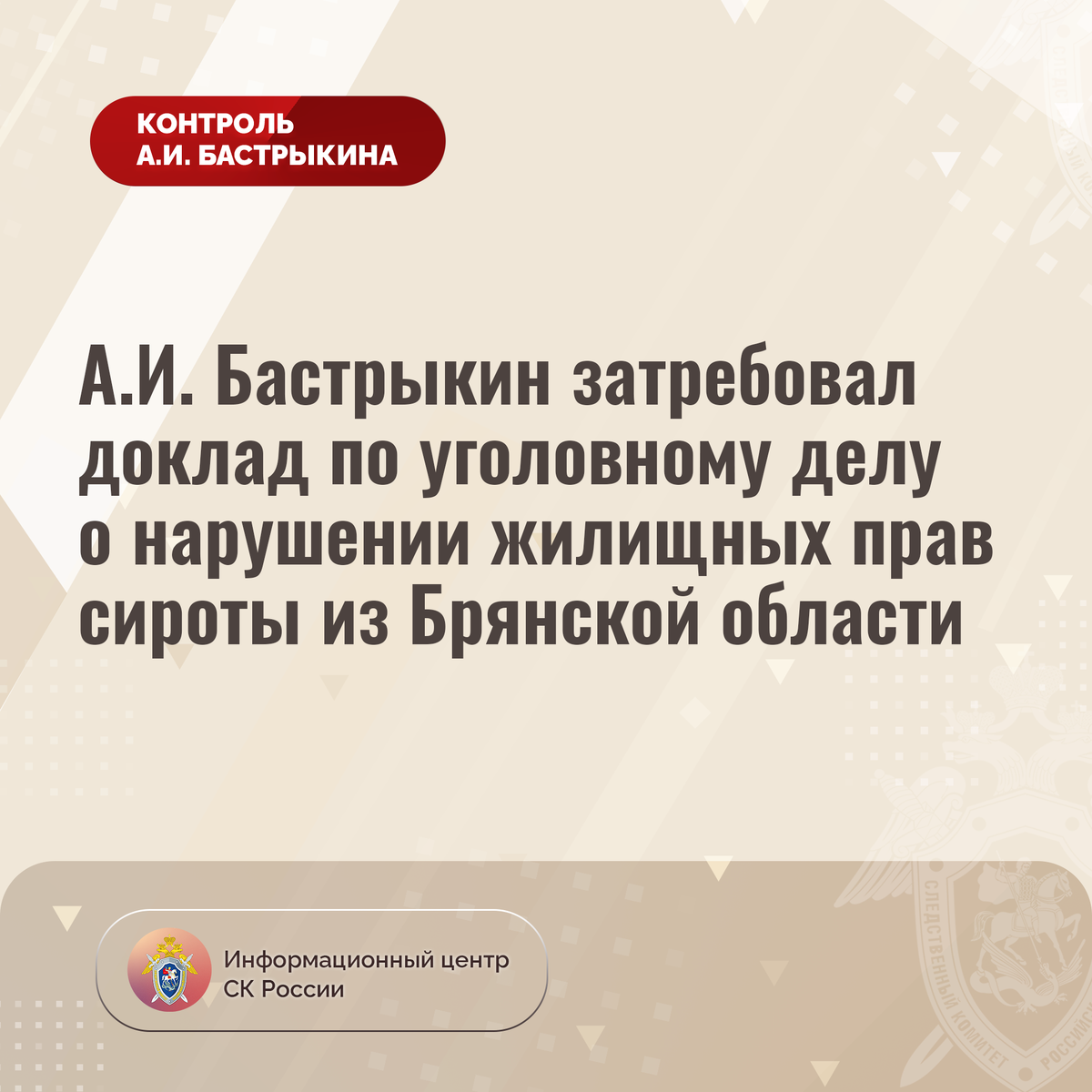 А.И. Бастрыкин затребовал доклад по уголовному делу о нарушении жилищных прав сироты из Брянской области