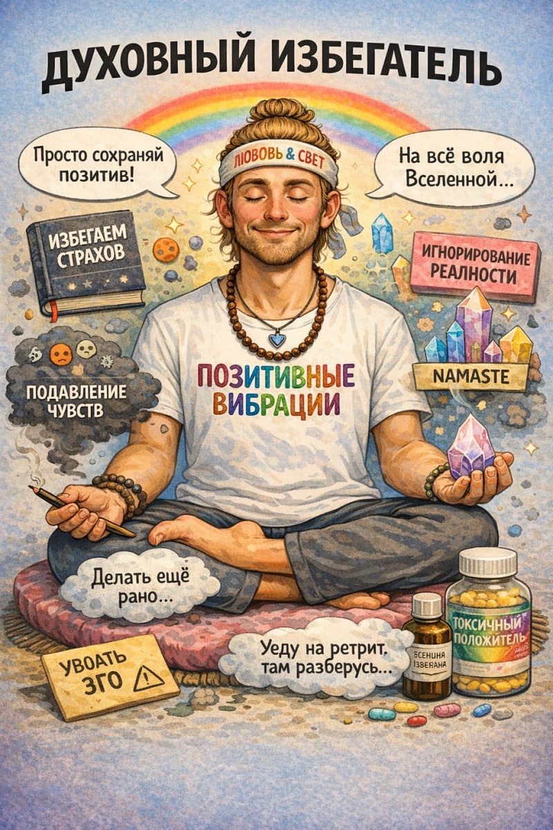 Мужчина говорит: — «Да, не получилось, видимо, не время» — «Уезжаю на ретрит, там всё прояснится» На поверхности звучит мягко, даже красиво. Но по сути это классическое духовное избегание. ⚡️ Смысл такой: — Это не я не взял ответственность — Это «время не пришло» — Это «ретрит решит за меня» Так человек сохраняет иллюзию, что он «на пути», но не делает ни одного шага, который реально угрожает его эго.