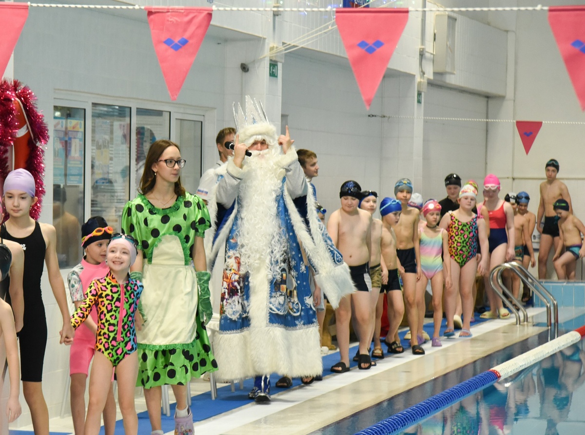 В праздничных мероприятиях принимают участие около 1000 воспитанников отделения плавания спорткомплекса «Олимпиец». Сегодня в бассейне спортивного комплекса «Олимпиец» прошла Новогодняя елка для воспитанников отделения плавания. Около 200 юных пловцов c Новым годом поздравил председатель Совета Туймазинского района, директор спорткомплекса «Олимпиец» Юрий Антонов. От имени главы администрации района Булата Мусина новогодние поздравления спортсменам передал заместитель главы по социальным вопросам Сергей Подоприхин. «Дорогие наши спортсмены, тренеры, родители! Желаю вам крепкого здоровья, выносливости, сил и терпения. Регулярные занятия спортом требуют огромной выдержки. Пусть вам с легкостью покоряются новые рекорды и успехи, а мы будем делать для этого все возможное», – сказал Юрий Николаевич. Юные пловцы водили хоровод с Дедом Морозом и зажгли новогоднюю елку – ее установили прямо над чашей бассейна. По традиции после праздника прошли новогодние старты на призы Деда Мороза. Те, кто з
