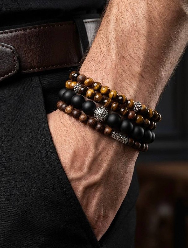 Недавно показывала сет браслетов, а сегодня хочу показать как стильно эти браслеты смотрятся на мужской руке
