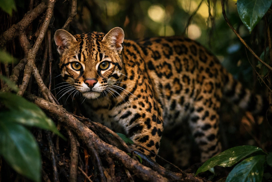 Её домом могут быть и влажные вечнозелёные тропические леса, где она лазает по деревьям в поисках спящих ленивцев или птичьих гнёзд, и сухие колючие редколесья, и заболоченные мангры, и даже горные склоны до высоты 3000 метров. Ключевым условием является наличие густого подлеска, скалистых укрытий или бурелома — мест, где можно скрытно передвигаться, отдыхать и устраивать засаду. В отличие от ягуара, оцелот не столь сильно зависит от крупных водоёмов, но при возможности не упускает шанс охладиться или поохотиться у воды.
