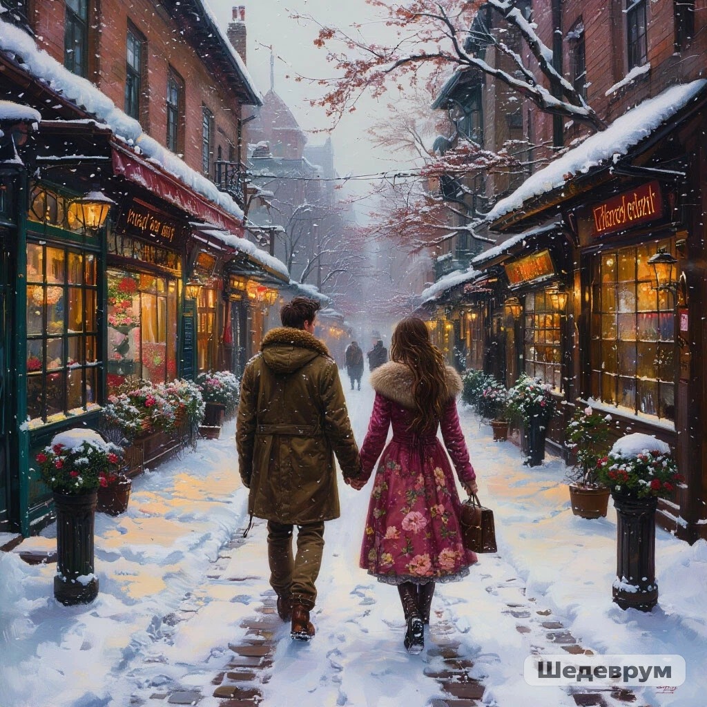 С тобой идëм по снежной мостовой,