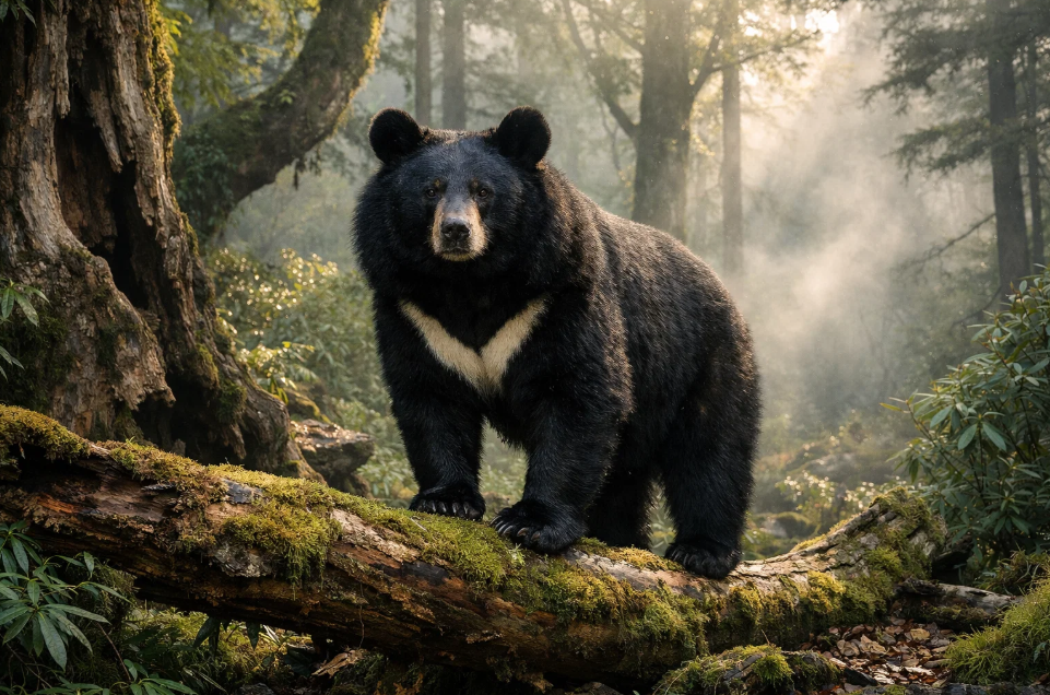 В высокогорных лесах Восточной Азии, где туман цепляется за пики гор, а древние деревья хранят тишину веков, обитает один из самых загадочных и малоизученных представителей семейства медвежьих — гималайский, или белогрудый, медведь. Этот зверь, известный также под названием «лунный медведь» из-за характерного белого пятна на груди, напоминающего полумесяц, ведет скрытный образ жизни в труднодоступных регионах, оставаясь во многом загадкой даже для ученых. Его существование тесно переплетено с экологией горных лесов, а судьба находится в прямой зависимости от сохранения этих уникальных экосистем.