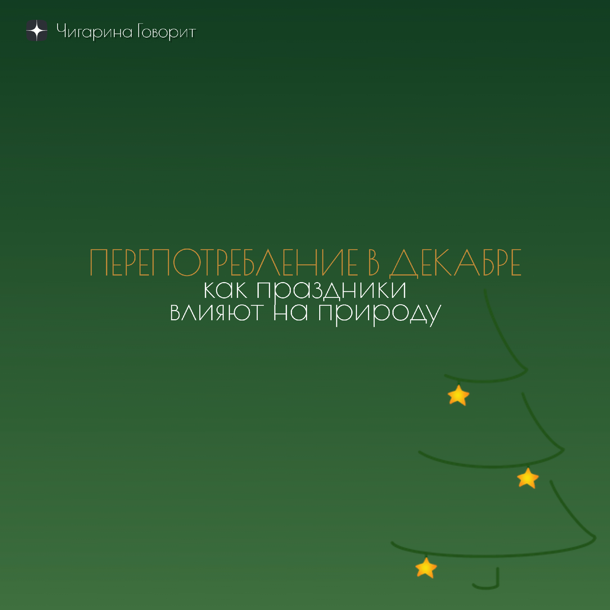 Конец года — время праздников, подарков, яркого света и запаха мандаринов. Но вместе с праздничным настроением приходит масштабное перепотребление: эмоциональные покупки, реклама, навязанные ожидания и чувство, что без материальных атрибутов праздник не удался. Это давление «праздничной нормы» — реклама, общение и социальные сети, побуждает нас тратить больше, чем нужно, зачастую покупая вещи, которые совсем не обязательны для хорошего настроения. В результате мы создаем не только эмоциональную нагрузку на себя, но и экологическую нагрузку на планету. Декабрь — один из самых интенсивных периодов в году с точки зрения экологических последствий: 🌍 Рост отходов