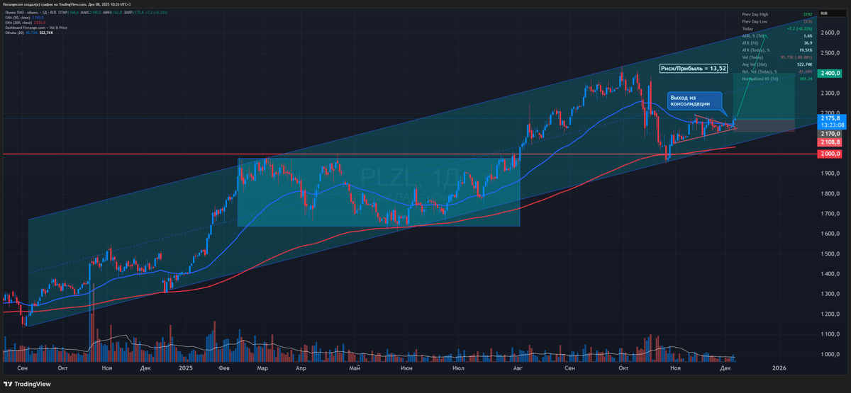 Я покупал акции Полюса в спекулятивном портфеле на выходе из месячной консолидации в сторону тренда, вслед за ростом цен на золото. Фиксировал позицию частями по мере роста котировок. Сначала на первом импульсе, затем в районе 2300 руб., когда золото сформировало двойную вершину и не смогло обновить максимум. В тот же день была экспирация фьючерсов, и на резком движении я сдал остаток по 2322 руб. в обоих портфелях. В таких условиях двойная вершина на золоте сама по себе не является сигналом к выходу, пока не сломана структура. Логичнее было подтянуть стоп в безубыток и дать сделке развиваться дальше. При этом меня действительно могло закрыть по безубытку, так как стоп в БУ я бы поставил в районе 2278 руб., так как в течение четырёх дней цена не опускалась ниже 2281 руб. Одна из ключевых ошибок в том, что я торговал трендовую сделку из страха, как будто она была контртрендовой. Ждал разворота на фоне геополитики и после заседания ЦБ. Да, коррекции были, но основной драйвер в виде роста