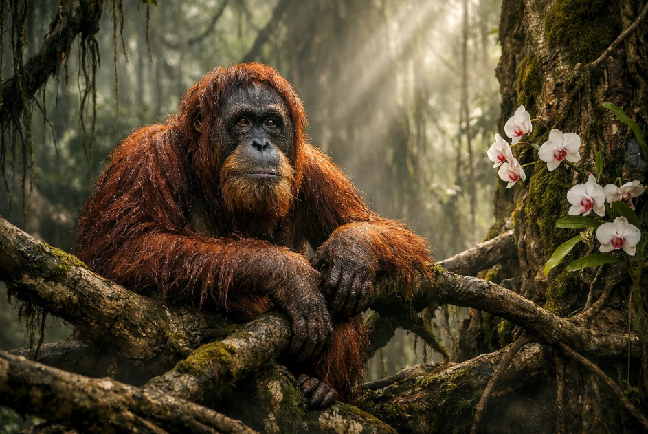 Сохранение орангутана — это не просто спасение отдельного вида. Это защита целой экосистемы, ведь орангутаны, как и люди, являются «инженерами леса». Перемещаясь по кронам и питаясь фруктами, они разносят семена на огромные расстояния, способствуя возобновлению и разнообразию флоры. Исчезновение орангутана станет невосполнимой утратой для тропических лесов Юго-Восточной Азии. Но, возможно, еще более глубокая потеря будет философской. Орангутаны — наши ближайшие родственники, разделяющие с человеком около 97% ДНК. Они — живое зеркало, в котором мы можем увидеть альтернативный путь развития интеллекта: путь созерцания, терпения и гармонии с природой, путь отшельника, а не завоевателя. Их спокойный, вдумчивый взгляд будто задает нам немой вопрос о цене нашего собственного «прогресса».