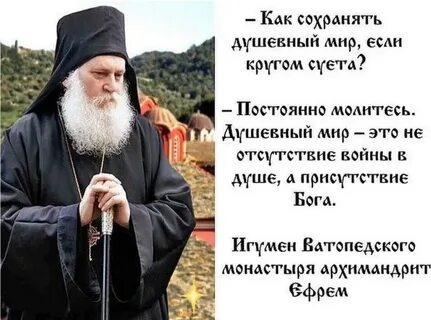 "Святые отцы говорят, что если мы не потрудимся и не смиримся сами, Господь не перестанет нас смирять. Пусть нас раздражают, пусть вводят нас в гнев до тех пор, пока не научимся хранить мир внутри себя несмотря ни на что. Только тогда душа становится смиренной и кроткой и может с полнотой разумения пройти свой земной путь".