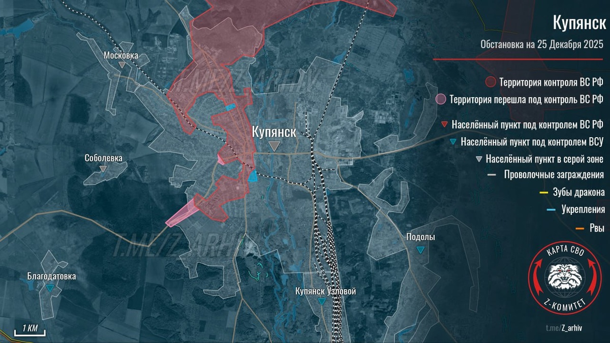 А это зона контроля в Купянске под данным различных отечественных картографов.