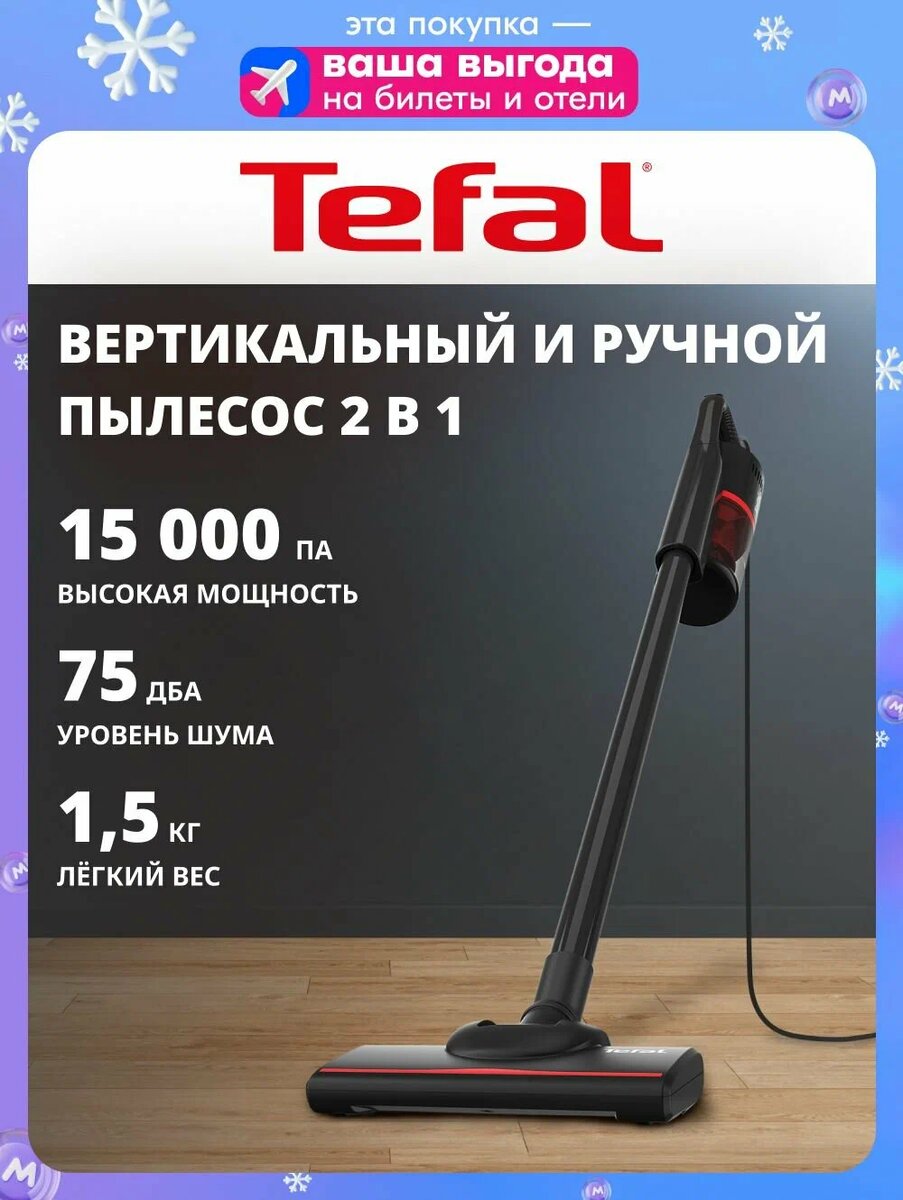 Где купить: на Яндекс Маркет Признайтесь, вы тоже иногда откладываете уборку, потому что доставать громоздкий пылесос — уже половина битвы? А потом ещё таскать его по комнатам, путаться в проводах, разбирать‑собирать… Знакомо? Давайте посмотрим, как можно изменить этот сценарий. Представьте: уборка занимает в два раза меньше времени, пылесос всегда под рукой, а после него в квартире — идеальная чистота без лишних усилий. Звучит как мечта? С вертикальным пылесосом Tefal TY1C15F1 это становится реальностью. Первое, что замечаешь, — его лёгкость. Всего 1,5 кг! Даже после 20‑минутной уборки рука не устанет. Он словно сам скользит по полу, а вы лишь слегка направляете. Дизайн — строгий и лаконичный. Чёрный корпус впишется в любой интерьер, а продуманная эргономика делает использование интуитивно понятным. Ручка удобно лежит в руке, не скользит, а кнопки расположены так, что вы найдёте их даже не глядя. Главная фишка модели — универсальность. Это не просто вертикальный пылесос, а настоящий