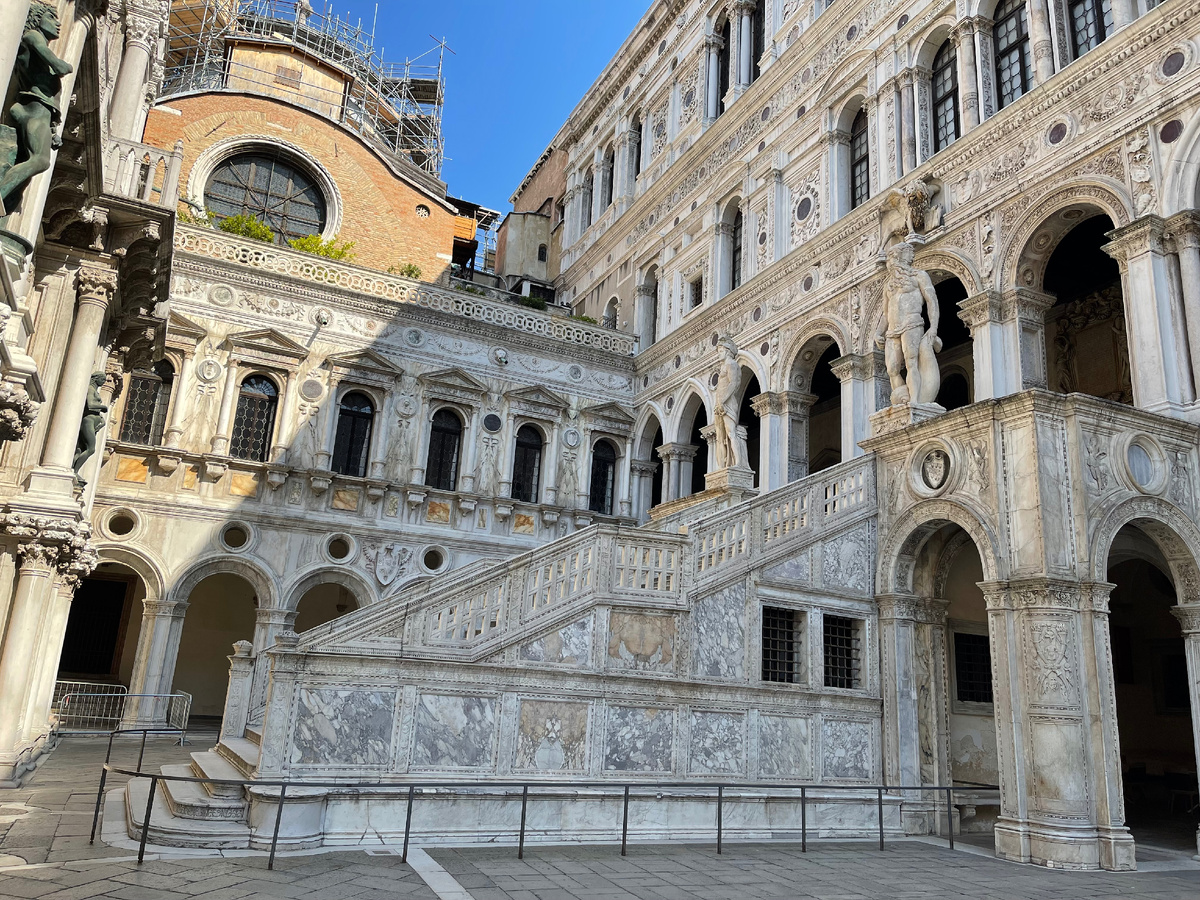 Переступая порог через Порта делла Карта ("Врата Бумаги"), вы совершаете путешествие во времени. Золотая лестница (Скала д'Оро), по которой поднимались лишь избранные, ведет в бесконечную анфиладу залов.