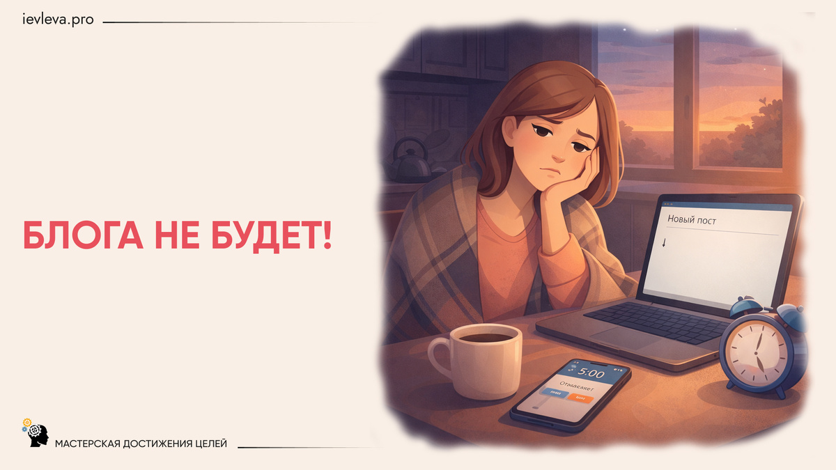 Типичный диалог начинающего блогера с кем-то близким. Что будет дальше в этой истории? Блог просуществует месяца два, а потом утро по праву будет таким, каким и было раньше, — без каких-то там блогов. А ведь мы все ставим цели примерно также: Причем разочарование не в себе, а в самой сути идеи: Почему это случается? Все это очень подробно раскладывает по полочкам Галина Иевлева на бесплатном вебинаре «Как ставить цели, чтобы они достигались?» СЕГОДНЯ - 30 декабря, в 18.00 по Мск. Главные темы вебинара: Если вы хоть раз попадали в ловушку своих «хотелок» и оставались разочарованными - особенно ждем! Галина правда знает, что с этим делать. Приходите! А вдруг это контент для вашего будущего экспертного блога? )) Зарегистрироваться на вебинар Кстати! Совсем скоро! Уже в январе. Ежегодный курс «Мастерская годовых целей». Это мощная работа в январе и феврале над будущим годом. - Подведете итоги 2025 года - Поставите цели на 2026 год. Да! Все это не «когда-нибудь потом», а прямо на курсе! + Т