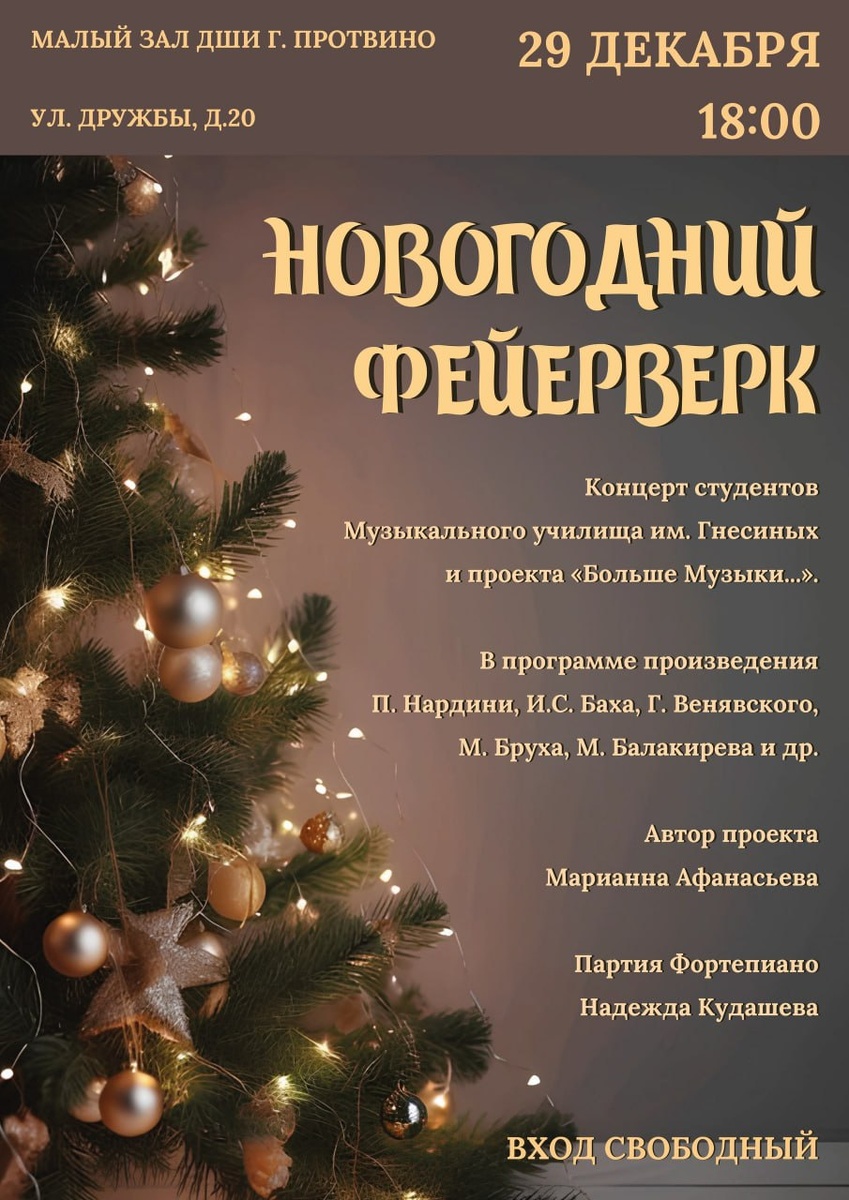 ✨ Приглашаем в Протвино на концерт Концерт студентов музыкального училища им. Гнесиных🎼 🚫 Возраст: 0+ 📆 29.12.2025 🕒 18:00 💰 Вход свободный❗️ ⭐Поддержать канал голосом 💰 Канал Вакансии Серпухова ✅ Мероприятия Серпухов https://dzen.ru/id/66f01c6eb4c6fe60c9ca1608 http://vk.com/serpukhov_events http://dzen.ru/serpukhov_events