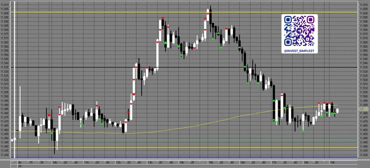 Перед вами отработка мной спекулятивной сделки от 24.12.2025. Работал вручную внутри дня. По-прежнему фиксировал малые движения. Но за счёт объёма и частоты совершаемых операций снова удалось достойно заработать. Стоит отметить, что в этот раз комиссия брокера и биржи совокупно не превысила 25% (в предыдущий день - порядка 40%) от заработанной по итогам дня суммы. Обратите внимание, текущая торговая сессия, как и предыдущая, представляет собой широкий «боковик». А цена по её итогу практически вернулась к значениям открытия торгов. Таймфрейм: пять минут. Направление: шорт. #трейдинг #фьючерсы #обучение #юань