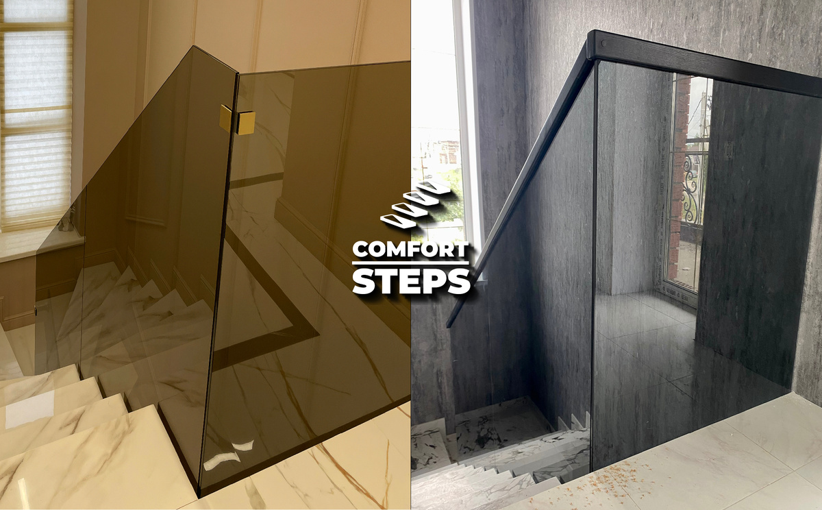 стекло в лестничном пространстве это не про безопасность, не про моду и даже не про минимализм. Это про то, как человек воспринимает пространство телом, когда он по этой лестнице идёт. Высоту. Глубину. Свет. Контраст. Покой или напряжение. В первом проекте мы использовали бронзовое стекло.