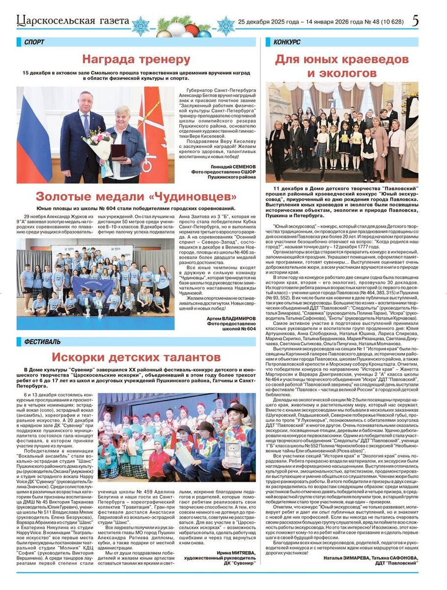 📰В новом выпуске «Царскосельской газеты» поздравляем Киселёву Веру Николаевну с присвоением почетного звания «Заслуженный работник в сфере