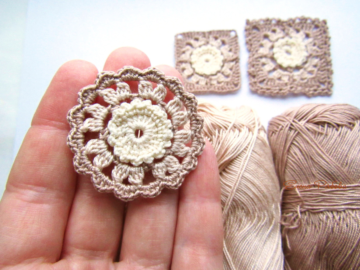 круглый мотив с цветочной серединкой и два квадратных мотива.
