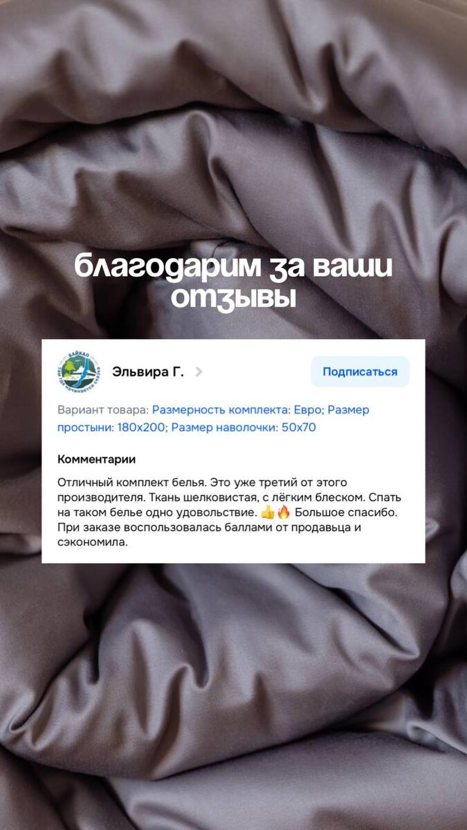 Спасибо каждому, кто оставляет отзывы о наших постельных изделиях
