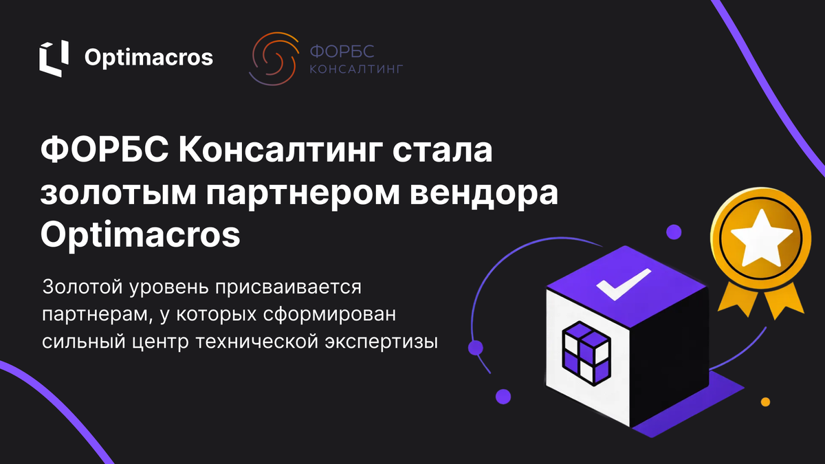 ФОРБС Консалтинг стала обладателем статуса золотого партнёра Optimacros — российской CPM/IBP-платформы для интегрированного планирования, бюджетирования и бизнес-аналитики. Статус закрепляет компанию в числе ключевых экспертов на рынке интегрированного бизнес-планирования и подтверждает высокий уровень компетенций команды в реализации технически сложных проектов на базе платформы. Золотой уровень присваивается партнерам, у которых сформирован сильный центр технической экспертизы по продукту вместе с подтвержденной методологической и функциональной практикой автоматизации: команда прошла углубленную сертификацию, реализовала ряд крупных проектов, качество которых подтверждено вендором, и вовлечена в совместное планирование roadmap развития платформы. Таким партнёрам доверяют самостоятельное выполнение комплексных проектов на Optimacros, включая построение архитектуры IBP- и S&OP-решений и дальнейшее развитие контуров планирования у клиентов. Ключевое преимущество для клиентов — возможно