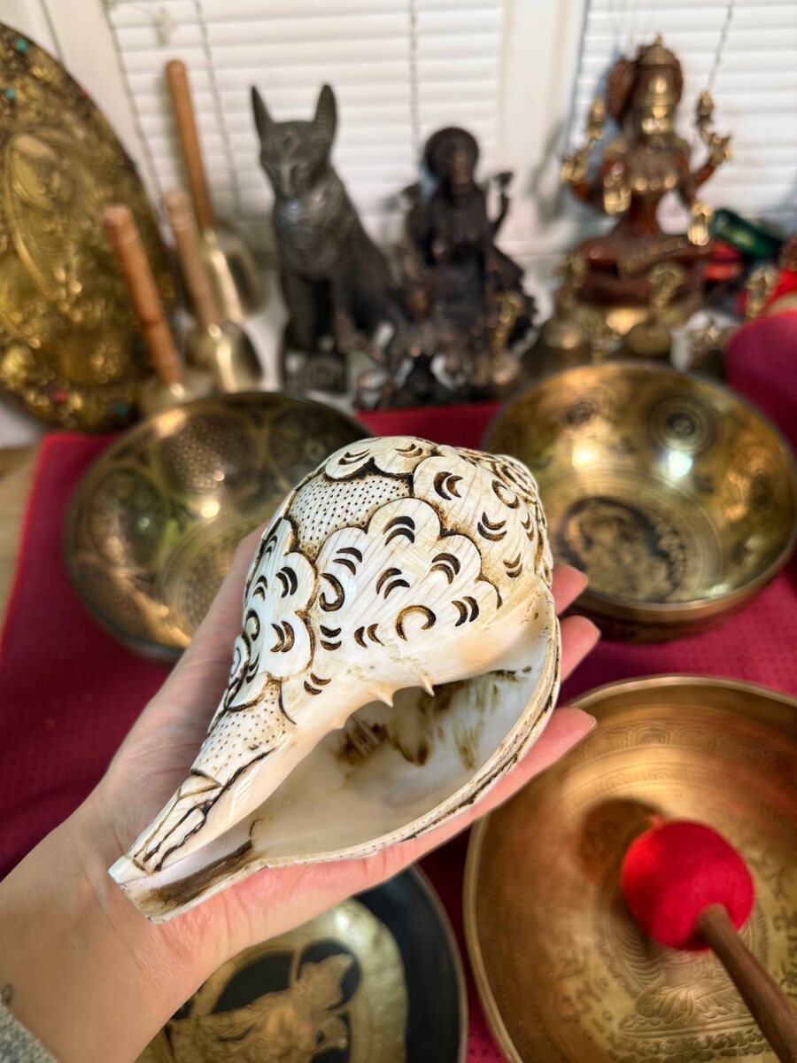 🥰🥰🥰🎅 🤍БЕЛАЯ ТАРА та самая которую невозможно выпустить из рук ибо они прижимают ее к сердцу. 🌟Рассматривать ее в ручную созданный узор отдельная медитация. Тара, мать всех Будд, является главной богиней буддизма. Одна из форм ее воплощения - это Ситатара или Белая Тара, символизирующая запредельную мудрость и исключительную чистоту. Изображения богини имеют яркую особенность - у Белой Тары 7 глаз, расположенные на лице, во лбу, на руках, а также на обеих ступнях, благодаря которым она видит все страдания во Вселенной. 🔅Поэтому считается, что Белая Тара является покровительницей человечества, являясь символом нежности, терпеливости и преданности. Да и звучание у нее с переходом от 3 к 4 чакре. 😍 ♥️Уже опробовала на домашних, младшая в начале сопротивлялась непривычному звуку, а после так прибалдела от бережного вибромассажа, что сказала, а вот бы поспать. А после начала активно и мне простукивать 4 чакру ))) #побщаячаша #звукиТибета #чашанепал #коллекционнаячаша #белаятара #