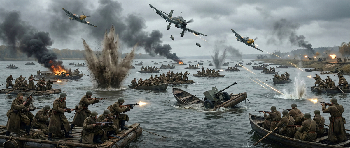 Германская авиация яростно мешала форсировать Днепр, переправы непрерывно били штурмовики, истребители и бомбардировщики. Нашим войскам не хватало прикрытия, потому что истребители, стеснённые радиусом действия и задержкой с аэродромами, не успевали к реке.