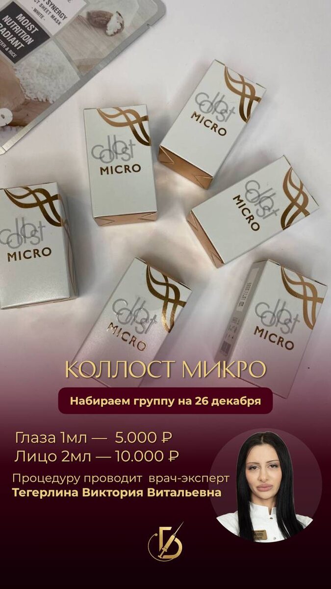 !🌟 COLLOST MICRO : Новое омоложение для ваших глаз! Набираем группу в НОВОМ ГОРОДЕ Врач:Виктория Витальевна Тегерлина 🔹 Стоимость: 5000 руб. за процедуру для зоны глаз. 🔹 Стоимость : 10000 руб. всё лицо 3 мл Новый год — новое сияние для ваших глаз! ✨
