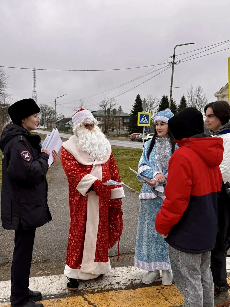 , ставшее уже доброй традицией, профилактическое мероприятие «Полицейский Дед Мороз». Целью мероприятия стало не только создание новогоднего настроения, но и напоминание жителям о важности соблюдения Правил дорожного движения в период предновогодней суеты и праздников. Волшебные герои, Дед Мороз и Снегурочка, вместе с сотрудниками Госавтоинспекции останавливали водителей и пешеходов, чтобы провести с ними профилактические беседы. Госавтоинспекция поздравляет всех с наступающим Новым годом! Желает жителям доброго и безопасного пути!