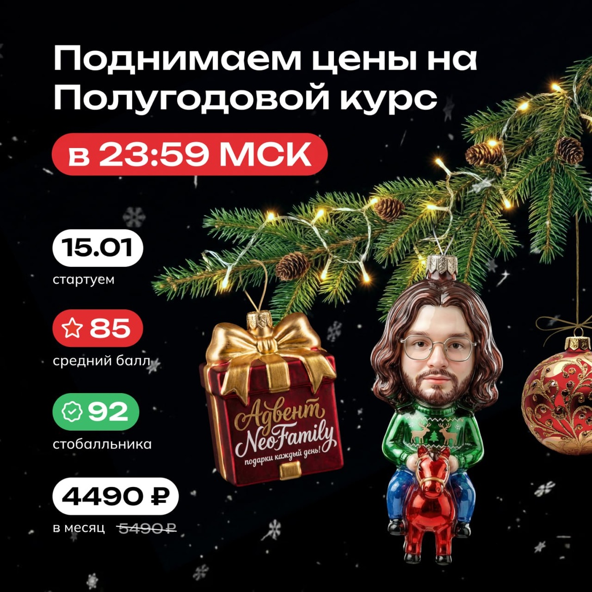 ! Напоминаю, что сегодня до 23:59 МСК вы можете сэкономить 4000₽ на подготовке 😱 Цена, по которой вы купили курс, сохраняется за вами навсегда. Никакие изменения вас уже НЕ коснутся. Все 4 месяца Полугодового будут стоить так же, как в декабре Либо даже ниже. Самые активные ученики в топе рейтинга каждый месяц получают скидку на курс (: — Кстати, если оплачивать весь Полугод целиком, то будет дополнительная скидка 5% — И конечно, скидки из Адвента никто не отменял! Используйте сегодняшнюю попытку здесь 💫 Читайте все подробности про Полугод по русскому и приходите к нам: https://neofamily.ru/shop/russkiy-yazyk-polugod2026 🫶