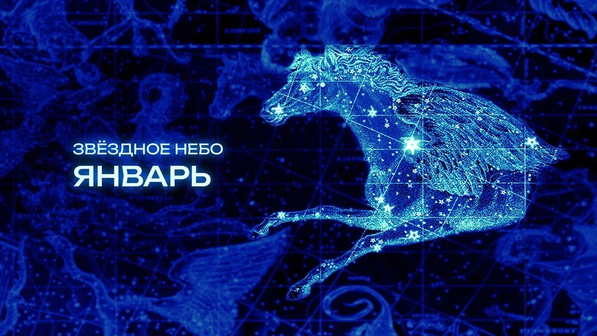 Январское звездное небо считается одним из самых красивых. Высоко над южным горизонтом поднимаются созвездия Орион, Телец, Возничий. Можно наблюдать самую яркую звезду ночного неба – Сириус, знаменитые туманности: Конская Голова и туманность Ориона, звездные скопления Плеяды и Гиады. Кроме этого, в южной области неба также высоко над горизонтом расположилось созвездие Близнецы. Звезды Кастор (α Близнецов) и Поллукс (β Близнецов) представляют головы близнецов Диоскуров. Под ними – Малый Пес, а вблизи горизонта – Большой Пес с самой яркой звездой всего ночного неба Земли – Сириусом. Три яркие звезды над южным горизонтом составляют астеризм «Зимний Треугольник»: Сириус (альфа Большого Пса), Бетельгейзе (альфа Ориона) и Процион (альфа Малого Пса). К востоку от Малого Пса расположились Рак и поднявшийся над горизонтом Лев. Млечный Путь простирается с юго-востока к северо-западу и проходит вблизи области зенита. На севере у самого горизонта находятся Лира и Лебедь, над ними Цефей, восточнее