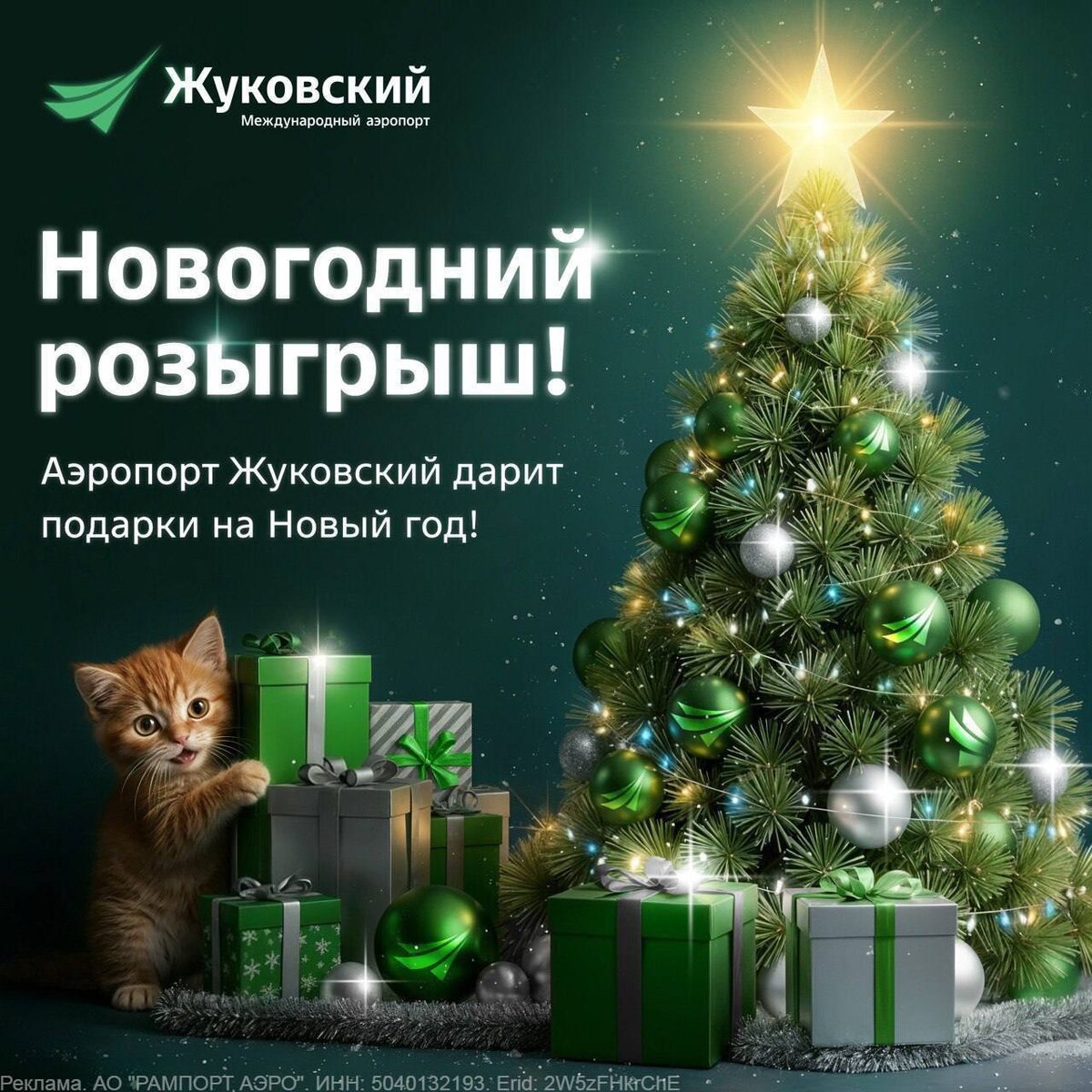 ! Аэропорт Жуковский не только делится подборками выгодных авиабилетов, но и щедро раздает подарки. Прямо сейчас — новогодний розыгрыш на 15 победителей. Успей забрать свой приз! Подписывайся и участвуй в розыгрыше!