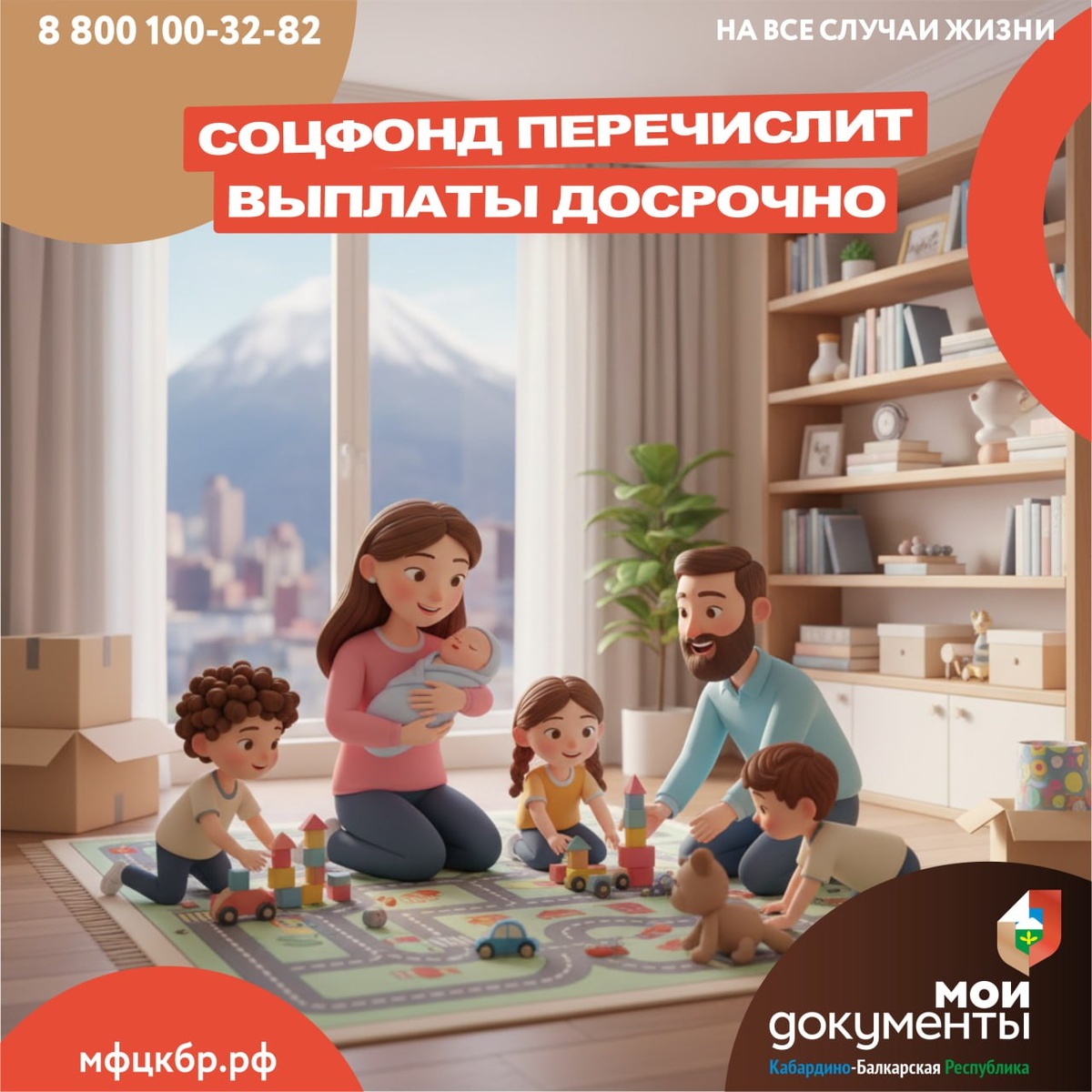 До 30 декабря включительно семьи с детьми получат все положенные выплаты за декабрь на карты и банковские счета 👩👩👧👧 🗓 В связи с новогодними праздниками Социальный фонд заранее перечислит детские пособия, которые по обычному графику приходят через банковские организации в начале января. Обратите внимание: ✔️ зачисление средств происходит в течение всего дня ✔️ если утром выплаты не поступили — дождитесь окончания дня 📬 Если получаете пособие по почте Выплата поступит в январе по привычному графику с у четом работы отделений Почты России в вашем регионе. 🔔 Дальше по обычному графику: выплата за январь поступит в феврале в привычные даты. Если дата выплаты совпадает с праздниками или выходными, средства перечисляют в последний рабочий день. Есть вопрос? Пишите ✏️ 🤎 #МФЦКБР #МФЦ #МоиДокументы #Госуслуги #СФР ✈️Подпишись и будь в курсе новостей | Мы в ВКонтакте | Мы в МАКС