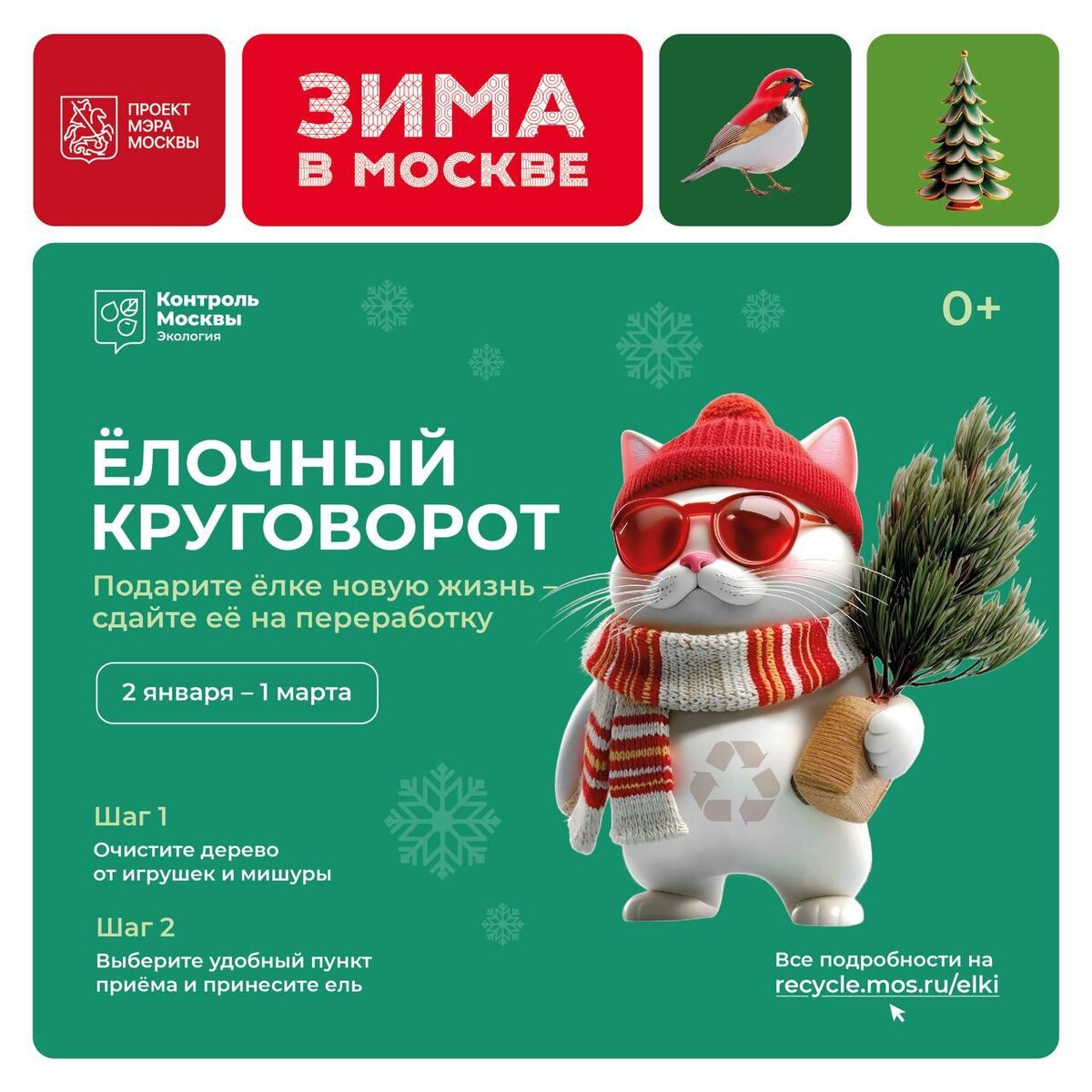 Департамент природопользования и охраны окружающей среды города Москвы проводит ежегодную эколого-просветительскую акцию «Елочный круговорот». 📍 С 2 января по 1 марта новогодние деревья можно сдать в специальные пункты приёма. Каждая елка становится мягкой щепой, которая помогает поддерживать природные уголки Москвы в хорошем состоянии. Присоединяйтесь к новогоднему круговороту добра ♥️ 📲 Префектура САО теперь в MAX
