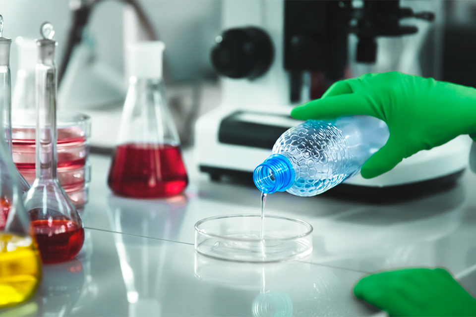 Основной источник — деградация упаковки: ПЭТ (полиэтилентерефталат, материал бутылок) и ПП (полипропилен, из которого изготавливают крышки), происходящая под действием механических нагрузок, нагрева или ультрафиолетового излучения. Сам по себе полимер химически инертен, однако промышленный пластик это композит. В него вводят пластификаторы (включая фталаты), стабилизаторы (часто на основе тяжёлых металлов), УФ-абсорбенты и антипирены. Эти добавки не встроены в полимерную матрицу ковалентно и при деградации высвобождаются как в раствор, так и в составе микрочастиц.