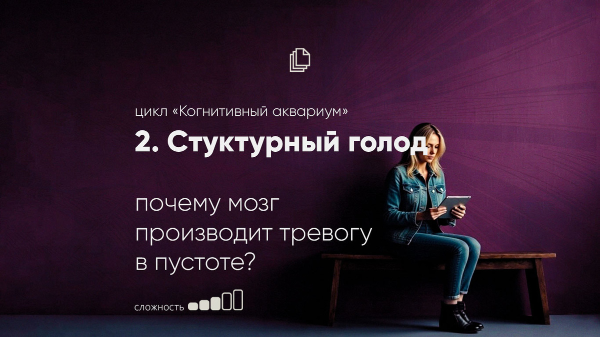 Структурный голод — универсальный феномен. Мы можем тонуть в данных, но испытывать дефицит смысла. Можем быть в полной изоляции и достраивать картину мира из обрывков. Можем жить в монотонной среде и производить тревогу от скуки. Механизм один — условия разные.