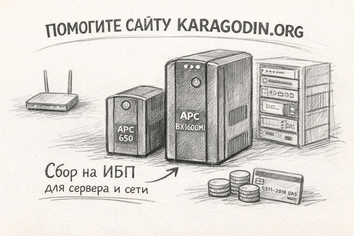 Эти устройства защищают сайт от сбоев из-за скачков напряжения и отключения электричества, напрямую влияя на его устойчивость и доступность. Общая стоимость оборудования составляет 40 000 ₽ (≈ $513). Мы будем крайне признательны за любую помощь в их приобретении – поддержать нас можно любой комфортной для вас суммой – в ₽, $, € или криптовалюте. Поддержать: https://karagodin.org/donate @karagodinorg