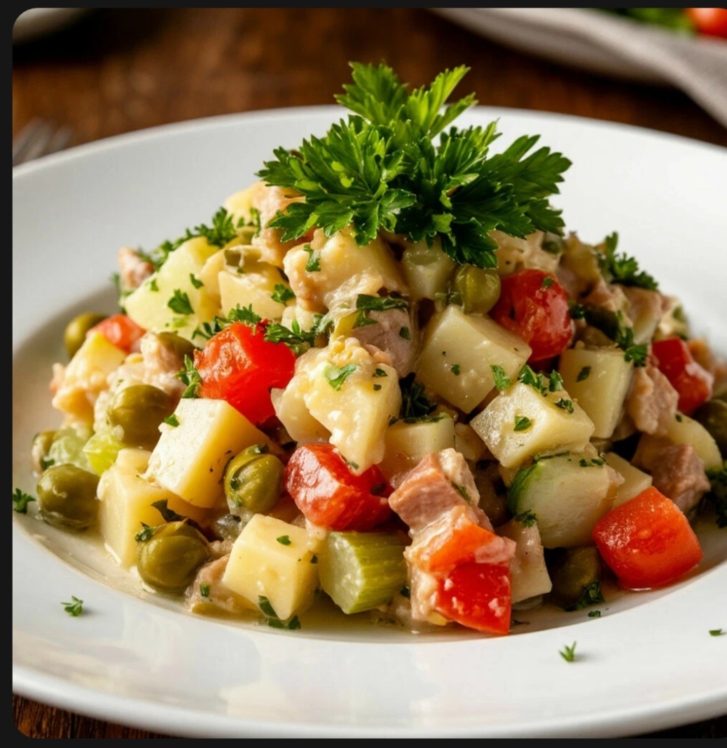 На 150 грамм салата 1 столовая ложка соуса. Готовый салат можно немного присыпать свежей зеленью