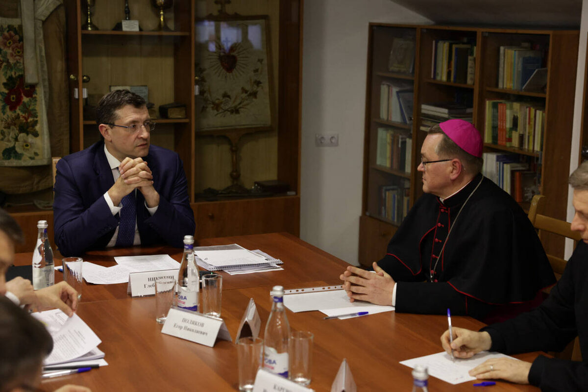 В рамках встречи с епископом Архиепархии Божией Матери в Москве Николаем и настоятелем нижегородского католического храма отцом Георгием губернатор Нижегородской области выразил благодарность руководству католической церкви в России за внимание и поддержку, оказываемую проекту восстановления переданного общине здания.