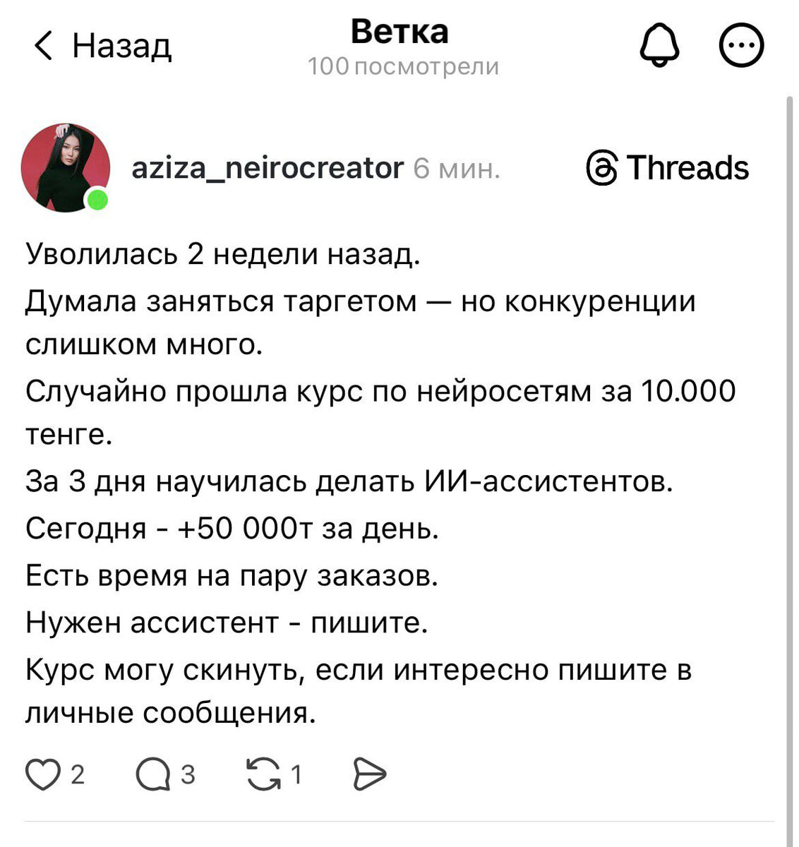 Сегодня увидела в Threads увидела пост. Девушка пишет: уволилась, прошла курс по нейросетям за копейки, за три дня научилась делать ИИ-ассистентов, сегодня заработала +50 000 за день. Есть время на пару заказов, пишите. И финальный аккорд: курс могу скинуть в личку. 🤦♂️ Я не понимаю, как можно быть настолько тупым человеком (и при этом называть себя экспертом)! Вот здесь я уже писала про плагиат, когда вы берете чужой контент и используете его у себя (это тоже тупо, если что). Это неэтично, это подрывает твою экспертность, это юридически рискованно. Но там хотя бы сохраняется иллюзия, что ты что-то применяешь. Но ОТДАВАТЬ чужой контент дальше - это еще хуже. С этого момента ты перестаешь быть экспертом и становишься распространителем. По сути - посредником в незаконном обороте чужого продукта. И здесь сразу несколько важных моментов, которые многие почему-то игнорируют. 1⃣ Первое. Фраза «я за это заплатил» вообще ничего не меняет. Покупка курса даёт вам право: 🔘 изучать, 🔘 пр