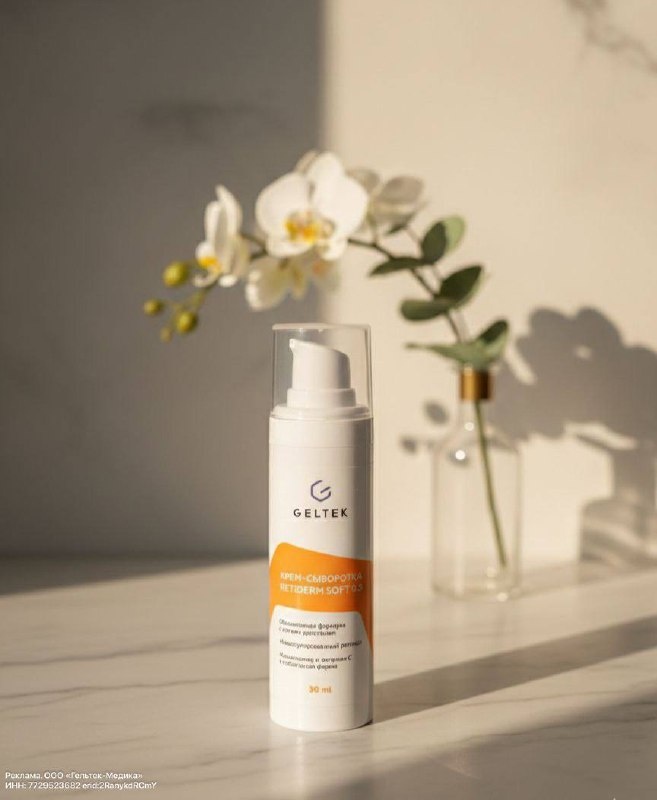 Но это не всегда так! ✨Хочу поделиться своей находкой, которая поможет бережно обновить кожу и ввести ретинол в уход, даже если вы только начинаете или хотите перейти на более высокую концентрацию без дискомфорта, как это сделала я. Уже несколько месяцев я пользуюсь кремом с 0.25% ретинола, теперь повышаем планку) 💓Знакомьтесь: Крем-сыворотка Retiderm 0,5 Soft от российского бренда Geltek! Это уникальное средство — мягкая обновленная форма ретиноловой сыворотки Retiderm 0,5, идеальная ступенька между концентрациями 0,25 и 1%. 🧪В составе: ✅0.5% активного ретинола двух видов: свободного и инкапсулированного в липосомах, что обеспечивает мощный и быстрый эффект с минимальным риском раздражений; ✅Ниацинамид для мощного противовоспалительного и защитного эффекта. Напомню, что он ещё предотвращает преждевременное старение клеток; ✅Витамин С в стабильной форме; ✅Восстанавливающие и увлажняющие компоненты. ❓Что делает эта крем-сыворотка? Она эффективно борется с морщинами и другими приз