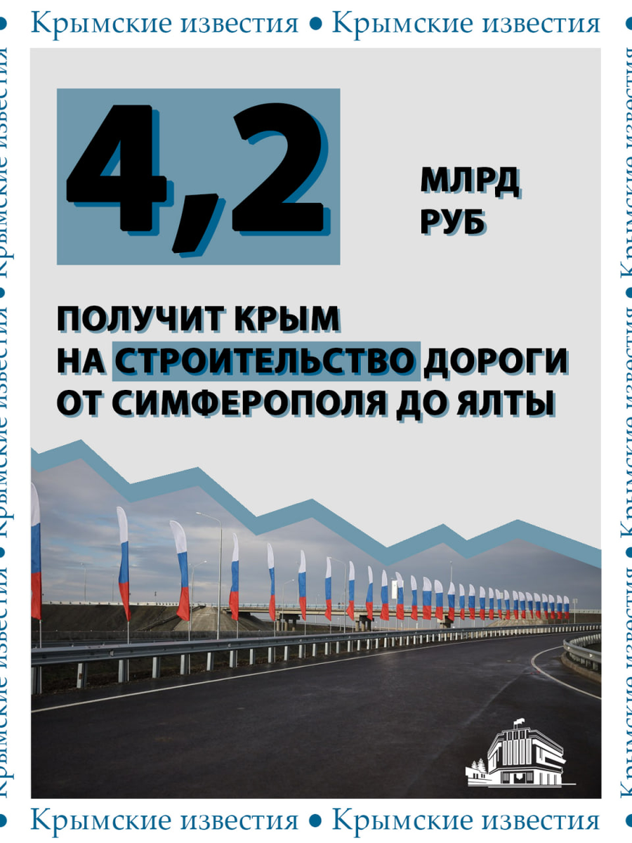💰 4,2 млрд рублей дополнительно выделят Крыму на строительство дороги от Симферополя до Ялты. За эти деньги проложат новый участок трассы протяжённостью 16 километров, сообщили в пресс-службе правительства России. Ранее сообщалось, что дорогу на Ай-Петри закрыли от села Соколиное Бахчисарайского района. Это необходимо для проведения ремонтных работ. Мы в телеграм 👉 https://t.me/newcrimiz