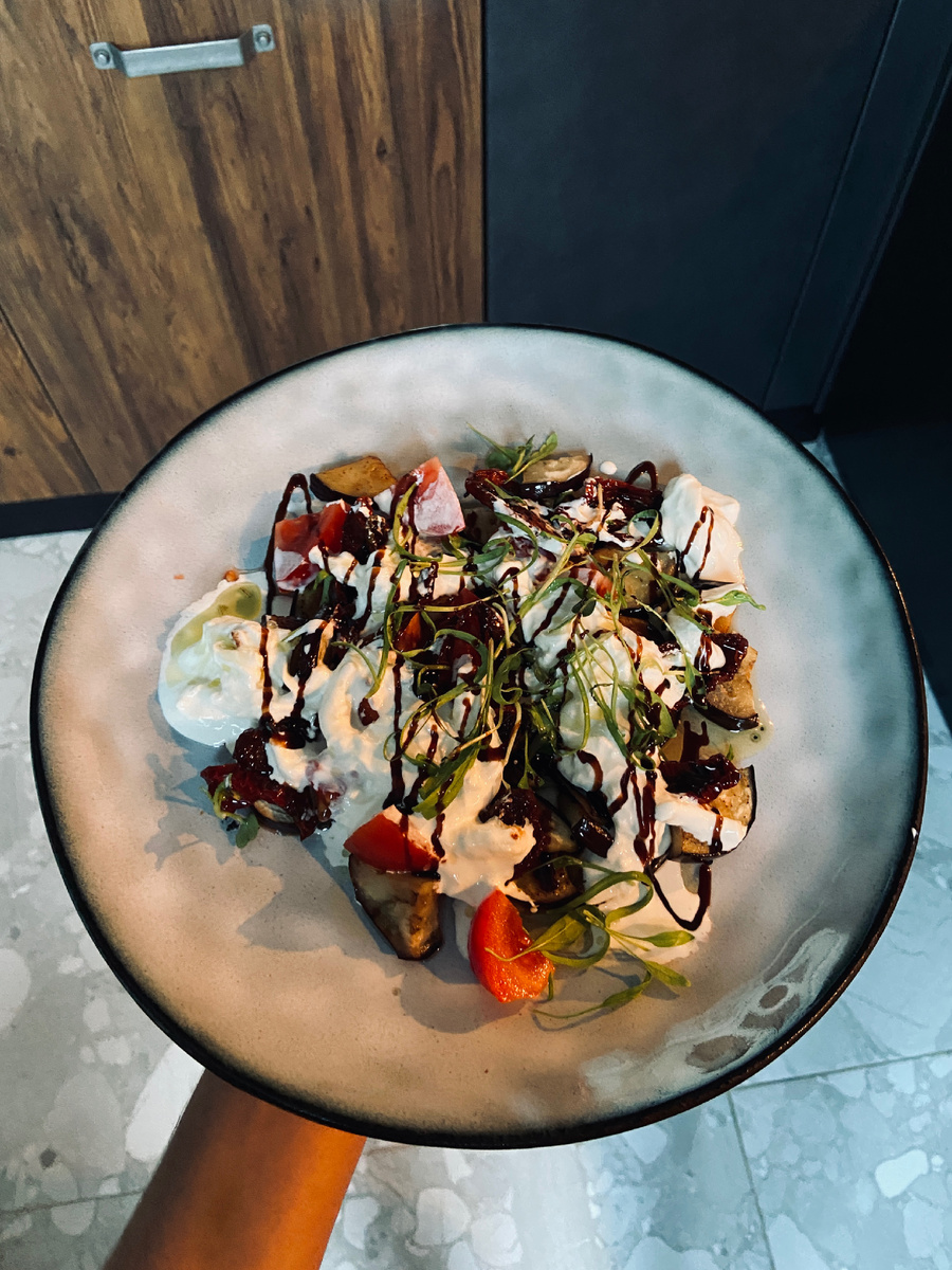 И по сути это овощной салат и к нему нужно нарвать утку, заправка-оливковое масло+ тыквенное масло+ лимон