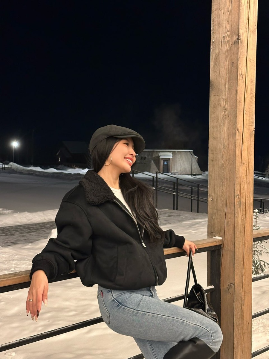 Дубленка Maison David, Сумка Guess и Сапоги Tendance собирают образ, в котором комфорт подаётся через форму, а детали становятся акцентами.