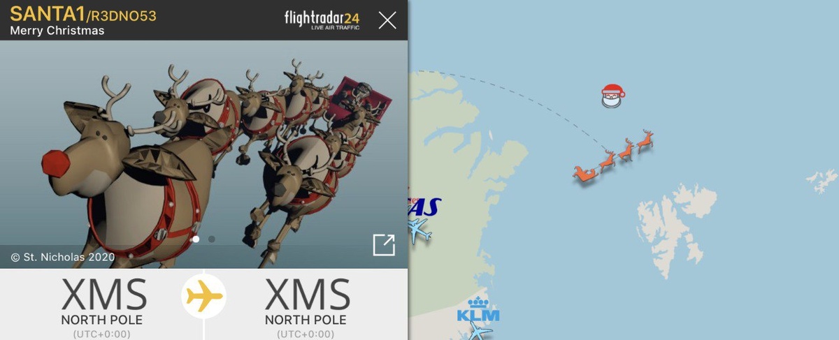 ✨ 🎅Санта-Клауса «поймали» на радарах: сервис Flightradar начал отслеживать его передвижения по небу накануне Рождества в западных странах. Найти Санту можно по иконке упряжки — он вылетел с Северного полюса и уже возвращается обратно. Если кликнуть на «рейс», на экране начнется снегопад. https://www.flightradar24.com/