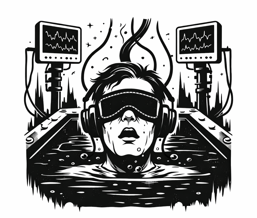 Сенсорная депривация — это состояние, при котором человек лишен внешних стимулов: света, звуков, тактильных ощущений. Впервые такие эксперименты начали проводить в 1950-х годах для изучения психики и подготовки астронавтов. Но что же происходит с мозгом в сенсорной изоляции? Исследования прошлого и наших дней показывают: последствия могут быть как удивительными, так и пугающими. В Университете Макгилла (Канада) студентам предлагали лежать на кровати с завязанными глазами, в полной тишине, за что платили 20 долларов в день. Большинство не выдерживали и трех суток: у них начинались галлюцинации, панические атаки, потеря чувства времени. Некоторые видели монстров, умерших родственников и слышали музыку, хотя вокруг была абсолютная тишина. Нейробиолог Джон Лилли в 1954 году изобрел флоат-камеру — резервуар с соленой водой, где человек плавает в полной изоляции. Сам Лилли проводил на себе эксперименты. Он утверждал, что в таких условиях мозг начинает генерировать альтернативную реальность,
