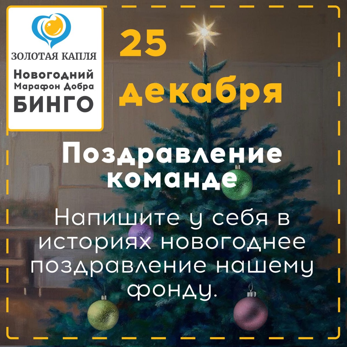 Друзья, смотрите, как наша ёлка чудес хорошеет! А мы добавляем на веточки четвёртое украшение и объявляем задание, которое согреет сердца всей нашей команды. 📍 Сегодняшнее задание: «Поздравление команде» Что сделать? Зайдите в свои истории ВКонтакте. Напишите и оформите короткое поздравление нашему фонду «Золотая Капля» с Новым годом! 🎅✨ Это может быть просто тёплое слово, пожелание или даже стикер - всё, что идёт от сердца. Обязательно отметьте нас Золотая капля, Благотворительный фонд, чтобы мы точно увидели вашу поддержку! Ждём ваши тёплые истории! Завтра, в самый канун Нового года, будет особенное задание. Не пропустите! 🎄
