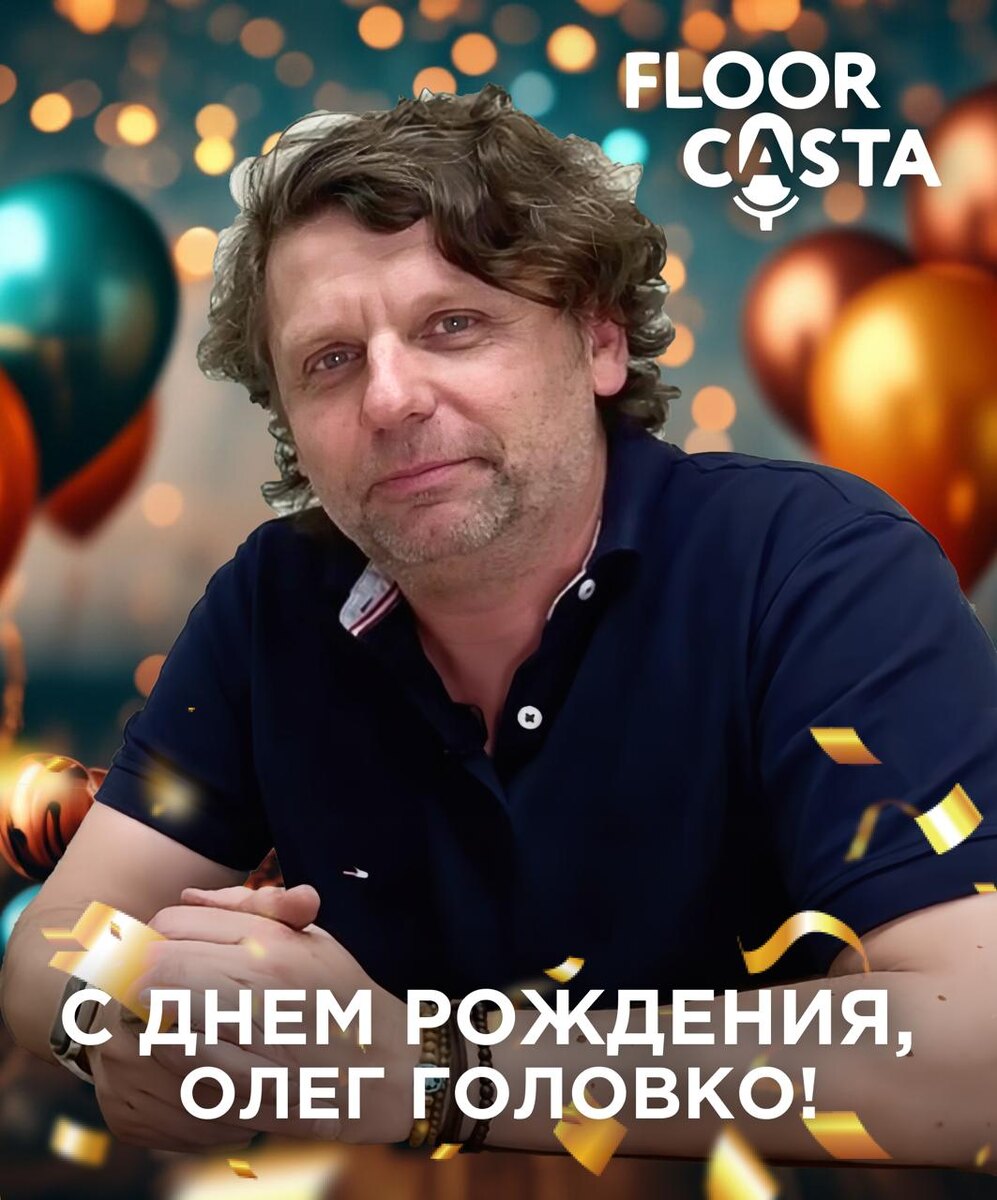! 🎁 Желаем крепчайшего здоровья, неиссякаемой жизненной энергии и бодрости духа! Пусть в доме всегда царят рок и радость, а в бизнесе — стабильный рост, верные партнеры и воплощение самых смелых замыслов 💪 Поздравляем с этой знаменательной датой и желаем процветания всей команде! 🥳 Давайте накидаем Олегу в комментариях множество пожеланий 😎 С уважением, команда FLOORCASTA 🥂