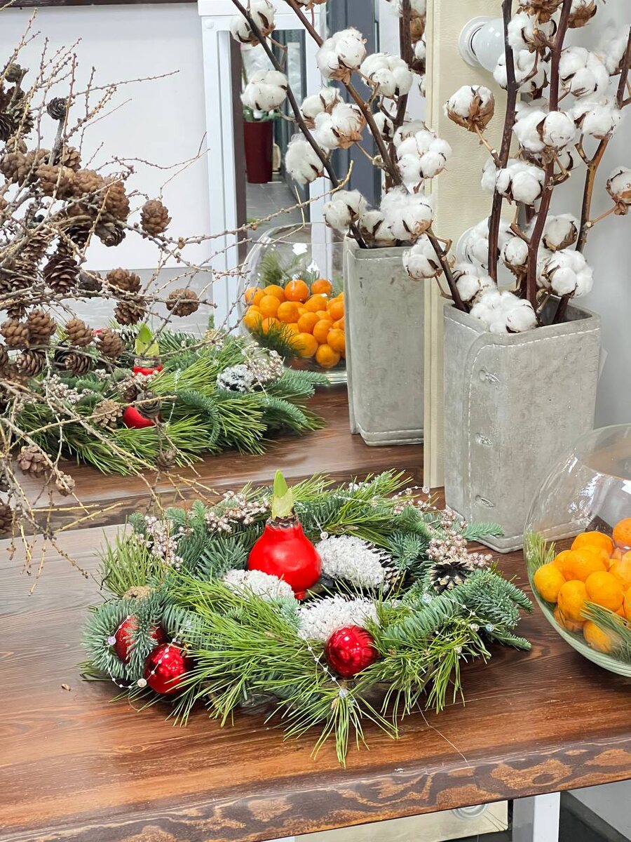 Композиция на венке из нобилиса и сосны с амариллисом на луковице в воске 🔥3850₽ Амариллис на луковице в воске не требует сложного ухода — все необходимые питательные вещества уже содержатся внутри луковицы, а воск защищает от пересыхания. Разместить растение в светлом местебез прямых солнечных лучей (яркий рассеянный свет). Подойдут подоконники восточных или западных окон, столики рядом с окнами. Избегать тёмных углов: при недостатке света цветонос будет слабым и искривлённым. Не ставить луковицу рядом с батареями, обогревателями или на холодный подоконник. Сквозняки и резкие перепады температуры могут замедлить цветение. Воск создаёт герметичный слой, внутри которого уже есть запас влаги и питательных веществ. Попадание воды на воск может нарушить его целостность и спровоцировать гниение. Можно слегка опрыскивать воздух вокруг растения, но не сам воск, при очень сухом воздухе. Частота опрыскиваний зависит от условий содержания: в сухом помещении процедуру проводят ежедневно,