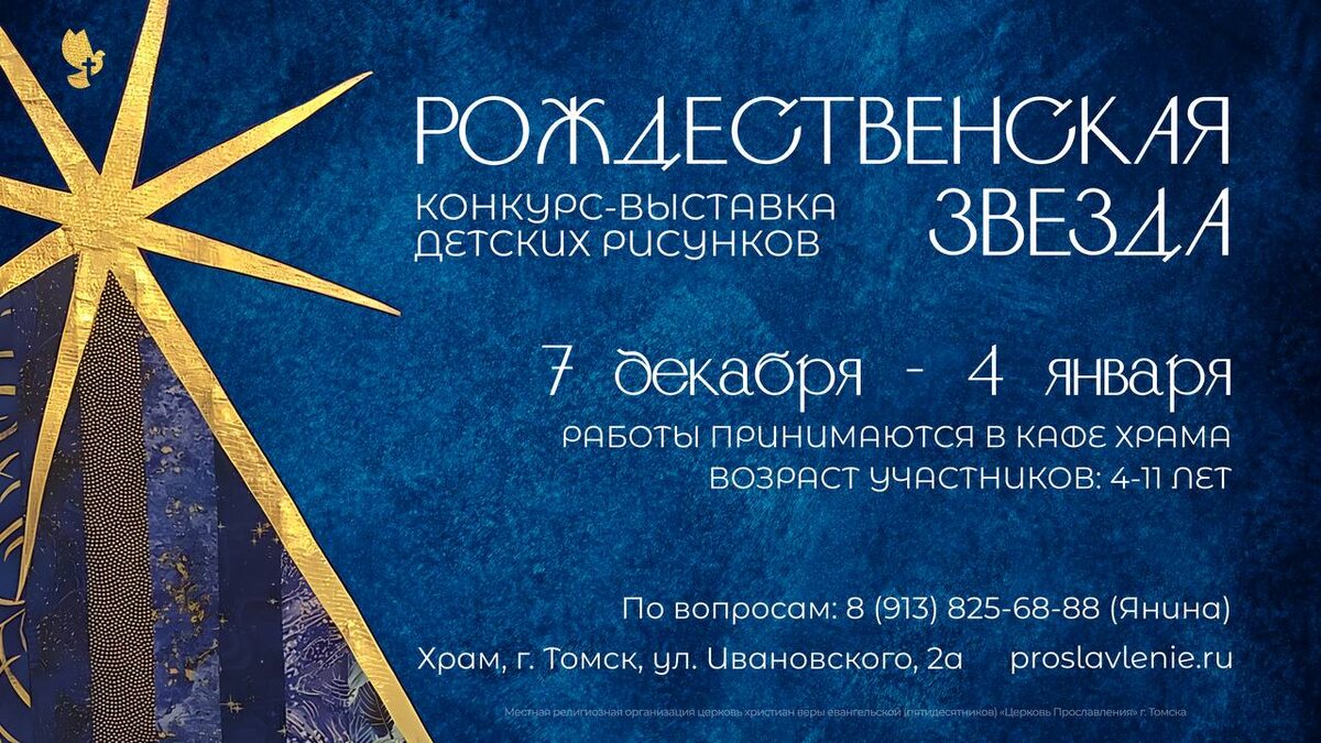 » ✨ Дорогие родители! Мы продлеваем конкурс детских рисунков! Напоминаем условия 😇 🎨 Номинации конкурса: - «Библейский сюжет» - «Рождество в нашей семье» - «Рождественский ангел» - «Рождественская ёлка» - «Рождественское чудо» - «С Рождеством Христовым!» (открытка) 🖌 Работы могут быть выполнены в любой технике: акварель, гуашь, карандаши, масло, восковые мелки. 📄 Формат — А4. 📅 Срок подачи работ: 04 января 2026 года 📍 Где сдать рисунок: кафе Храма (ул. Ивановского, 2а) ➡️ На лицевой стороне (в правом нижнем углу) укажите: ФИ ребенка и возраст (например: Иванов Семён, 7 лет). ➡️ На обратной стороне (простым карандашом): - номинацию - контактный номер одного из родителей 🎁 04 января (воскресенье) — торжественное награждение победителей дипломами и подарками! Желаем всем участникам творческого настроения и удачи! Куратор конкурса: Янина — 8-913-825-68-88