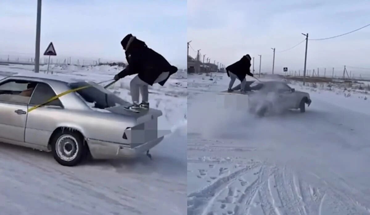 В Акмолинской области водителя привлекли к ответственности сразу по трём статьям административного законодательства за грубое нарушение правил дорожного движения, передает Azattyq Rýhy. Видео из Instagram заинтересовало полицию Как сообщили в пресс-службе Департамента полиции Акмолинской области, 24 декабря в социальной сети Instagram появился видеоролик, на котором зафиксирован опасный трюк на дороге. На кадрах видно, как мужчина располагается на багажнике движущегося автомобиля, держась за трос, в то время как водитель выполняет рискованные манёвры. Будто мужчина «оседлал» машину. Подобные действия могли привести к тяжёлым последствиям, вплоть до гибели человека. Личность водителя установили После публикации видео в соцсети сотрудники полиции оперативно отреагировали на инцидент. В ходе проверки были установлены место происшествия и личность водителя. Выяснилось, что видеозапись была сделана 23 декабря в селе Караоткель Целиноградского района, граничащем с Астаной. За рулём автомобил